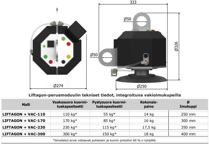 varmistaa tarraimen sopivuuden nostettaville kappaleille. Eri imukuppityypit, tyhjiöjärjestelmän kokoonpanosta etähallintaan: jokainen Liftagon on ainutlaatuinen.